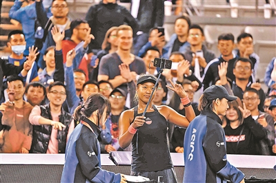 大阪娜奥米获胜后与现场球迷自拍留念