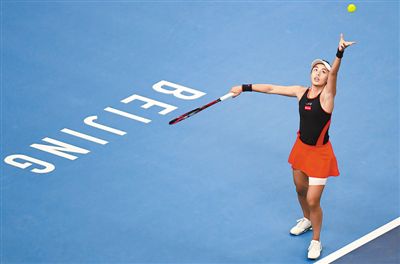 10月6日,王蔷在2018年中国网球公开赛女单半决赛中发球。新华社记者 张晨霖摄