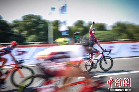 车手冲过终点欢呼。 刘剑璞 摄