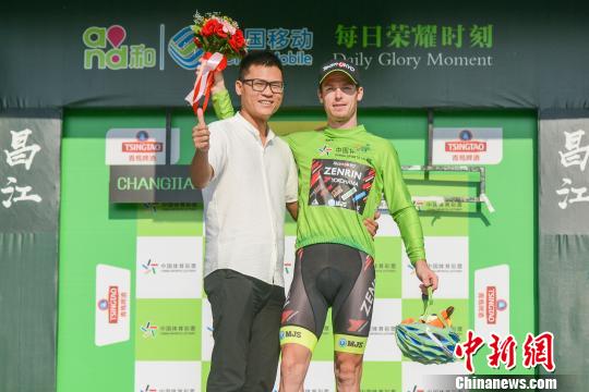 雷蒙德·科瑞德连续四个赛段穿上冲刺王绿衫。 环岛赛组委会供图 摄