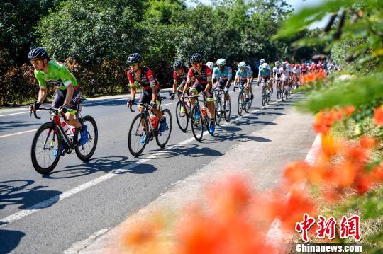 图为参赛选手在大团中骑行。 骆云飞 摄