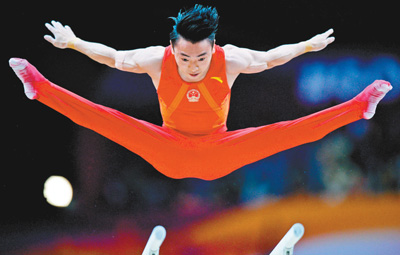 当地时间11月3日,中国队选手邹敬园在比赛中。当日,在卡塔尔首都多哈进行的第四十八届体操世锦赛落幕,在男子双杠决赛中,邹敬园以16.433分夺得金牌。本届世锦赛,中国体操队共夺得男子团体、男子鞍马、女子平衡木、男子双杠4枚金牌,金牌数与美国队并列第一。