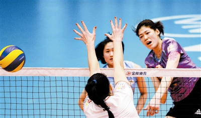 上图 李盈莹(右)是天津队主要火力点。 本报记者 宁 柯摄 本报记者 谢 晨