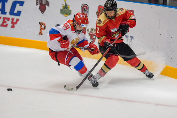 首节比赛,首场落败的俄罗斯队展开狂攻猛炸,朱瑞、赵启男和方新判断准确,经常组成二抢一,顺利化解对手进攻。第8分钟,瞿骊萤送出妙传,王玉婷左路盘带中突然一杆打门,对方门将来不及反应,球已经进入网袋,中国女子冰球国家俱乐部队以1-0打破僵局。