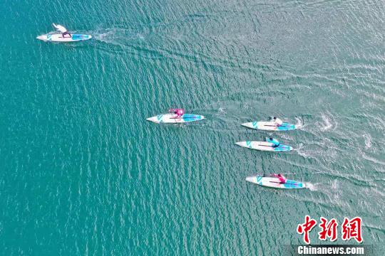 大学生队伍进行桨板竞速挑战。 黄贤熊 摄