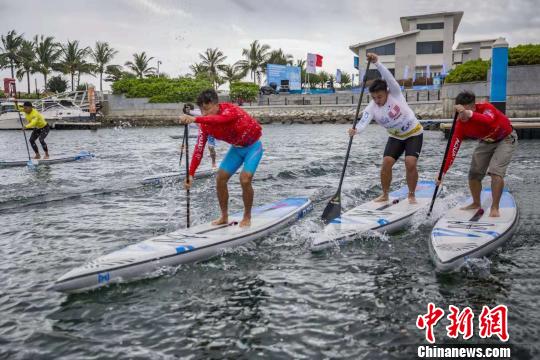 中新网万宁12月4日电 (林檎)第二届全国大学生桨板竞速挑战赛4日在海南万宁市石梅湾开赛。来自全国20所高校的近200名选手参赛。