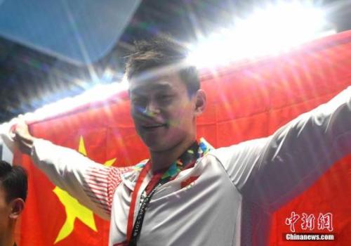 资料图:孙杨身披国旗。中新社记者 王东明 摄