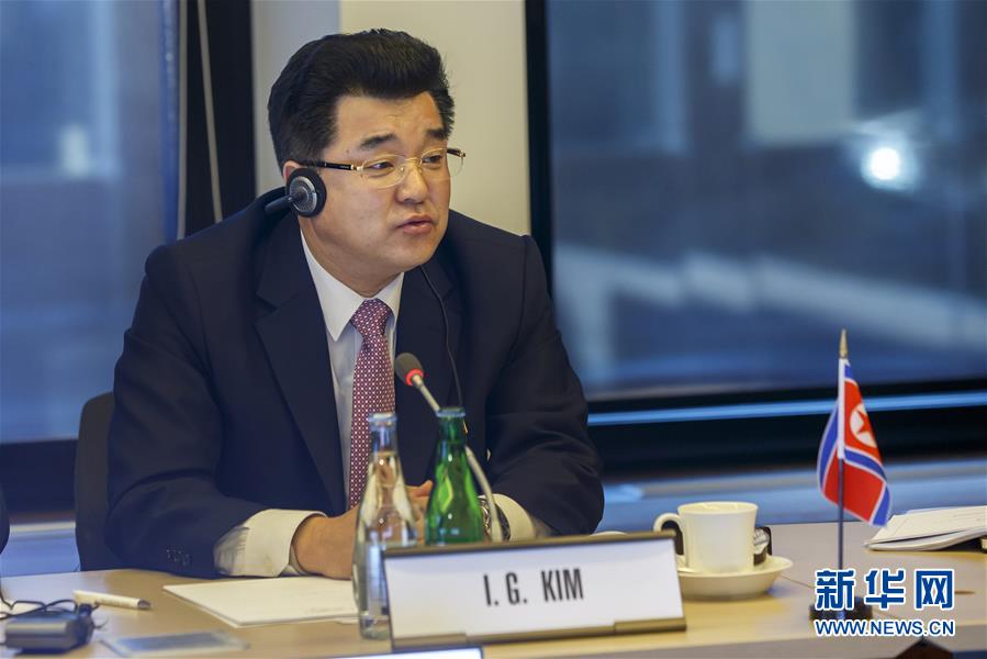 2月15日,朝鲜奥委会主席、体育相金日国在会议上发言。 新华社发(萨尔瓦托雷·迪·诺尔菲摄)