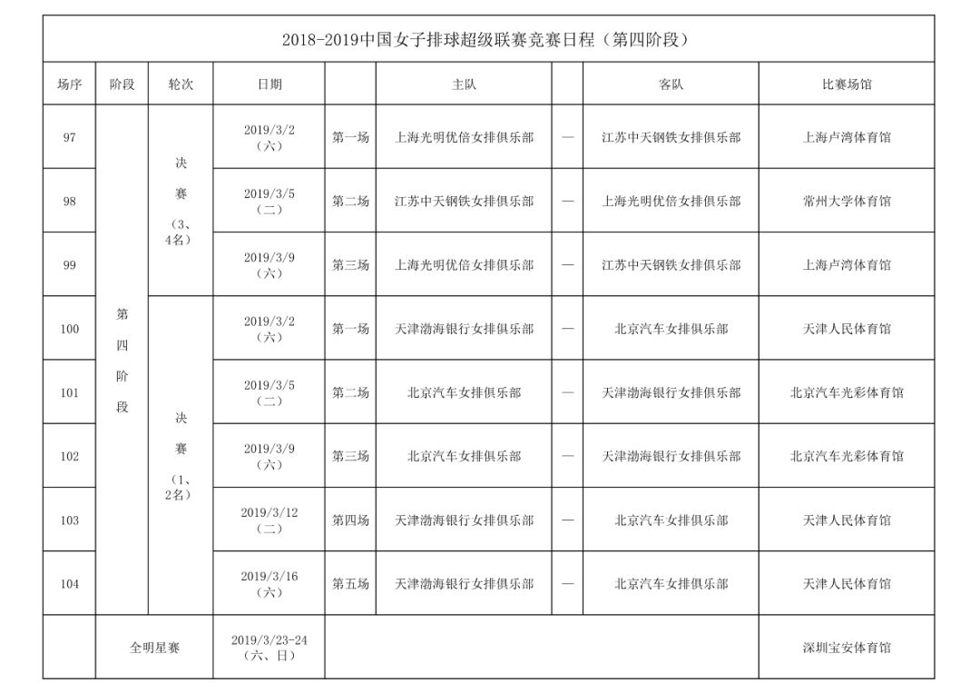 由于半决赛已经全部结束,全国女排超级联赛总决赛将提前进行。根据赛程,决赛采用5场3胜制,常规赛排名靠前的天津女排将占据一个主场优势。首场较量将于本周六(3月2日)下午4点在天津人民体育馆进行,天津女排将在主场迎战北京女排。