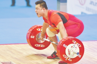 题图:27日,在举重世界杯男子109公斤级比赛中,中国选手杨哲以抓举193公斤、挺举215公斤,总成绩408公斤夺得该级别抓举、挺举和总成绩三项冠军。 新华社