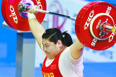 在昨天的两个男子大级别较量中,中国选手均轻松获胜。男子109公斤级比赛,去年在世锦赛斩获总成绩银牌的杨哲以抓举193公斤、挺举215公斤和总成绩408公斤包揽三项冠军;最重量级的男子109公斤以上级比赛中,艾雨南以183公斤、230公斤和413公斤的成绩收获了抓举、挺举和总成绩金牌。