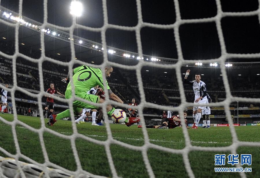 AC米兰队球员皮亚特克(右二)在比赛中破门得分。新华社发