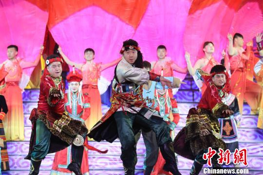 第九届宁夏少数民族传统体育运动会开幕表演现场。 胡耀荣 摄