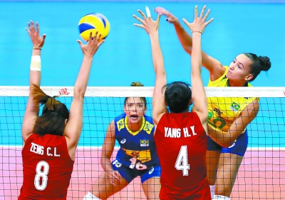 今天上午,中国女排不敌巴西队。 本版图片由国际排联官网提供