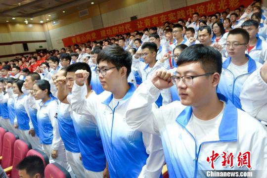 5日,二青会志愿者出征仪式在太原理工大学举行。 武俊杰 摄