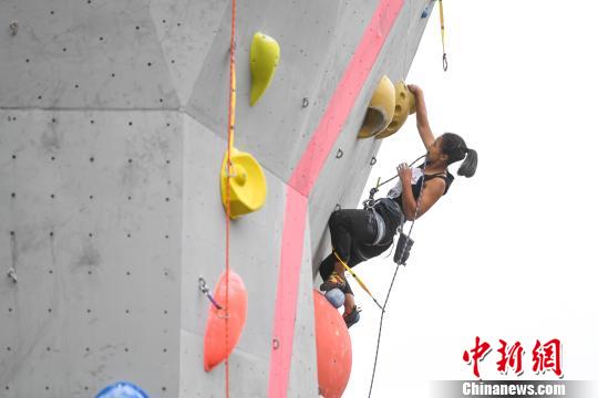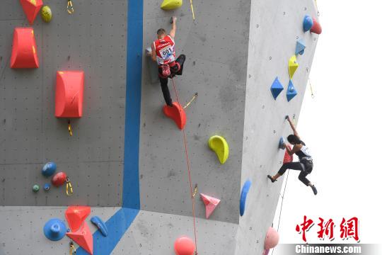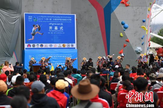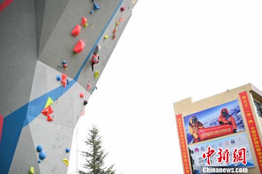 2019“一带一路”中国拉萨国际攀岩大师赛10日在高原城市拉萨开赛。 何蓬磊 摄