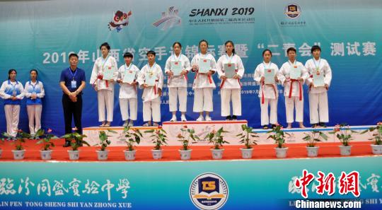 中新网临汾7月11日电 (任丽娜)11日,2019年山西省空手道锦标赛暨第二届全国青年运动会(以下简称“二青会”)测试赛在临汾市落幕。此次比赛共决出31枚金牌、30枚银牌、48枚铜牌。其中,东道主临汾市代表队共摘得9枚金牌、8枚银牌、17枚铜牌。