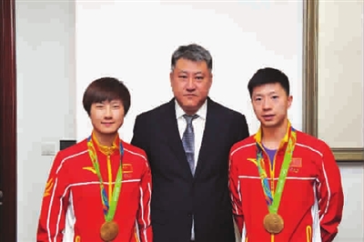 张雷办公室的墙上,挂着一张照片,那是他和马龙一同登上全运会冠军领奖台的留影;在办公室外的通道上,丁宁获得世乒赛女单冠军的照片也被摆在显眼的位置。张雷说,那是他人生中最开心的两个时刻。“马龙和丁宁都很有好胜心,但有时候,他们也要学会暂停一下。”