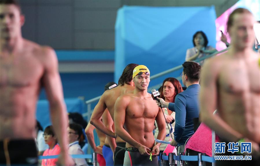 7月22日,徐嘉余在比赛后接受采访。 当日,在韩国光州举行的2019国际泳联世界游泳锦标赛男子100米仰泳半决赛中,中国选手徐嘉余以52秒17的成绩位列第一名,晋级决赛。 新华社记者王婧嫱摄