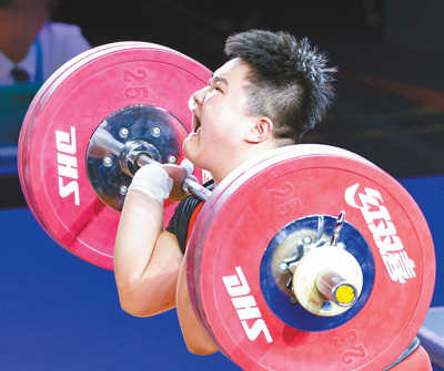 8月9日,第二届全国青年运动会的各项比赛全面展开。图为当日参赛选手在挺举比赛中。