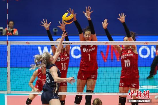 资料图:6月5日,2019年世界女排国家联赛第三周中国香港站比赛,中国队对阵荷兰队,总比分3:0拿到香港站两连胜。 中新社记者 谢光磊 摄