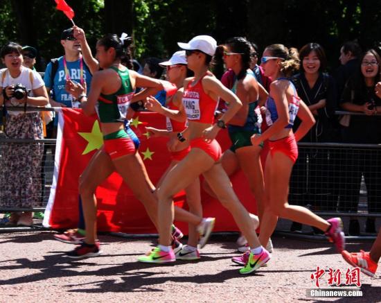 伦敦田径世锦赛,中国队夺取2金3银2铜,为1993年世锦赛外的历史最佳表现。(资料图:图为2017年8月13日,伦敦田径世锦赛最后比赛日,中国新秀杨家玉在女子20公里竞走比赛中夺冠,为中国队赢得本届世锦赛的第二枚金牌。图为在中国观众的助威声中,杨家玉(前中)为中国队摘金。 中新社记者 张平 摄)