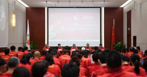 段世杰在仪式上表示,本次比赛是东京奥运的前哨战,意义重大。新华社 贾宇辰 摄