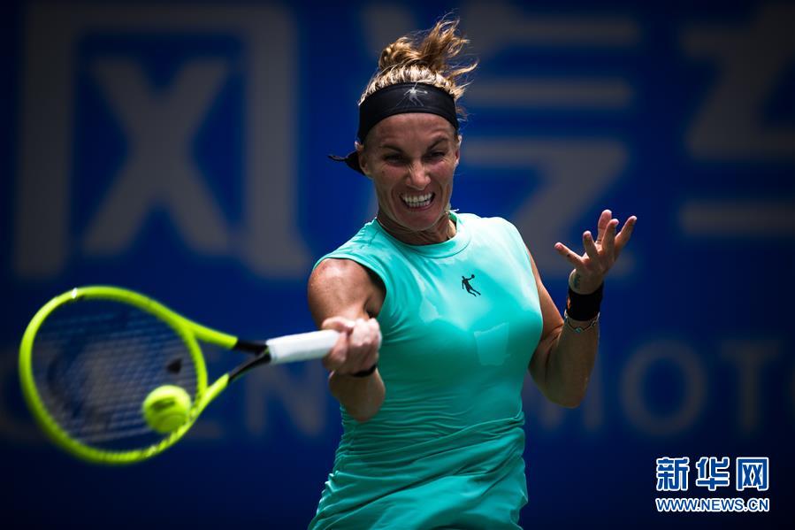 9月25日,俄罗斯选手库兹涅佐娃在比赛中回球。 当日,在2019年WTA武汉网球公开赛女子单打第三轮比赛中,乌克兰选手艾琳娜·斯维托丽娜以2比0战胜俄罗斯选手库兹涅佐娃,晋级八强。 新华社记者肖艺九摄