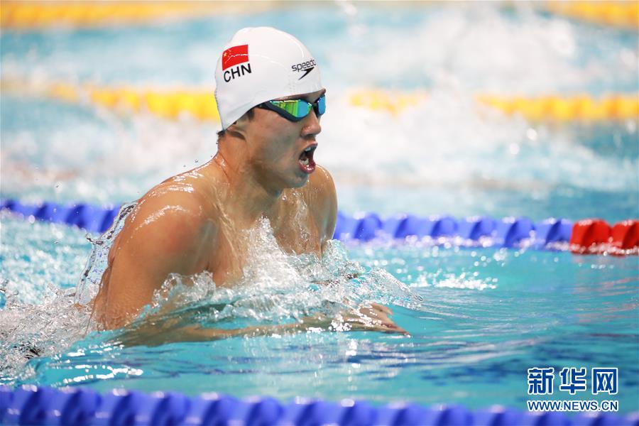 10月20日,中国选手汪顺在比赛中。 当日,在武汉进行的第七届世界军人运动会男子200米个人混合泳决赛中,中国选手汪顺以1分56秒25的成绩获得金牌,另一名中国选手覃海洋以1分56秒79的成绩获得银牌。 新华社记者 刘续 摄