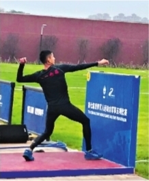 无独有偶,昨日参加军事五项的潘玉程也是位“左投手”。比赛现场,记者看见,在约3米长2米宽的投弹台上,潘玉程一上台就不断地做着各类热身动作,上下跳、摇臂、拉伸,还时不时大声喊叫为自己鼓劲,以激发身体的“兴奋点”。投远过程中,潘玉程左手拿弹,以极快的速度向前跨步、投出,动作连贯、一气呵成,如此反复三次,轻松完成比赛。