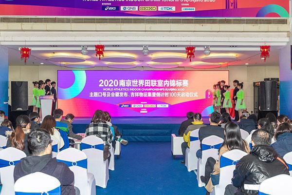 中新网12月4日电 4日,2020南京世界田联室内锦标赛主题口号及会徽发布、吉祥物征集暨倒计时100天启动仪式在南京全民健身中心一楼大厅举行。会上发布了2020年南京室内锦标赛的会徽、主题口号,并公开面向全球征集吉祥物。