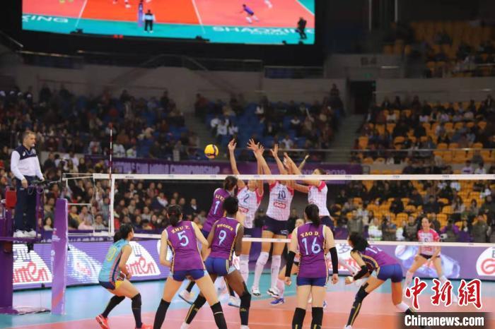 资料图:2019世界女排俱乐部锦标赛在浙江绍兴开赛。图为天津女排在比赛中。商泽阳 摄