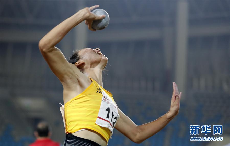 9月15日,福建队选手沈沐含在女子七项全能铅球比赛中。最终,沈沐含获七项全能铅球第三名。 当日,2020年全国田径锦标赛在浙江省绍兴市上虞体育场拉开战幕。 新华社记者 王丽莉 摄