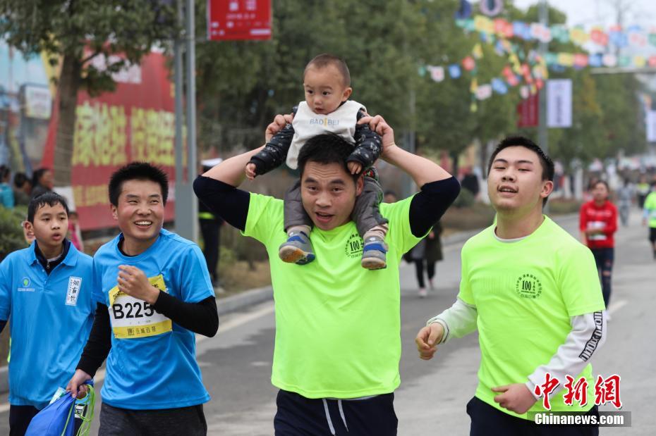 3月4日,一名小孩坐在家长的肩上参与马拉松。当日,2018中国·道真国际半程马拉松赛在贵州省道真自治县举行。本次赛事共有5000名运动员参加,其中,有来自俄罗斯、意大利、乌克兰、肯尼亚等国家以及中国选手1000人参加男女半程马拉松,贵州省内及本地选手2000人参加10公里欢乐跑,情侣及亲子组2000人参加3公里比赛。中新社记者 瞿宏伦 摄