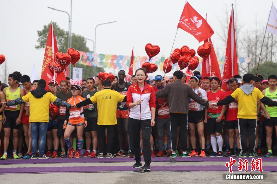 3月4日,原长跑女子运动员孙英杰在开跑前带领跑者热身。当日,2018中国·道真国际半程马拉松赛在贵州省道真自治县举行。本次赛事共有5000名运动员参加,其中,有来自俄罗斯、意大利、乌克兰、肯尼亚等国家以及中国选手1000人参加男女半程马拉松,贵州省内及本地选手2000人参加10公里欢乐跑,情侣及亲子组2000人参加3公里比赛。中新社记者 瞿宏伦 摄