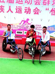 湖北日报讯 图为:在本次省残运会上,章莹(中)获三项冠军。