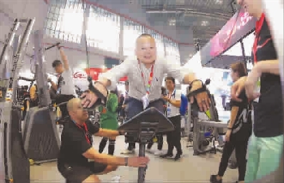 ■ 观众体验新的健身器械 见习记者 李铭珅 摄