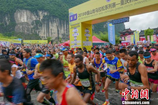 图为2018年中国山地马拉松系列赛重庆黔江站(国际赛)开跑。 钟欣 摄
