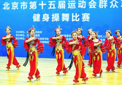 北京市第十五届运动会健身操舞比赛现场。本报记者 饶强摄