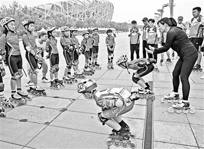 叶乔波辅导小轮滑队员