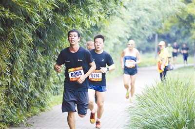 8月12日,在通州运河森林公园漕运码头,来自北京各企事业单位及通州城市建设者共计700多名跑步爱好者聚集于此,由北京奥运城市发展促进会主办的2018北京奥运城市体育文化节闭幕式暨奥城健康跑启动仪式正式启动。王永 摄