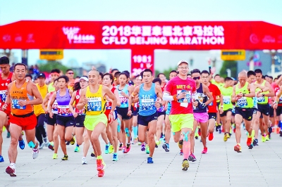昨天早晨,2018北京马拉松在天安门广场开跑。本报记者 邓伟摄