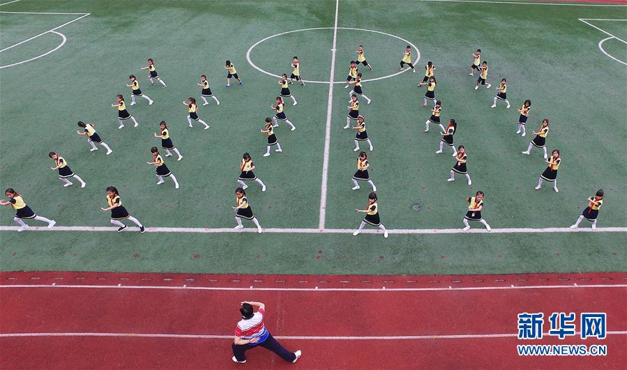 9月28日,江西省抚州市临川区第十三小学的学生正在练习“戏曲广播操”。 新华社记者万象摄