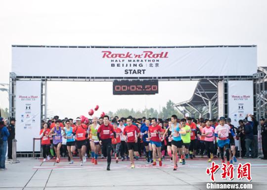 2018摇滚马拉松13日于北京奥林匹克森林公园鸣枪开跑 主办方供图 摄