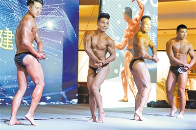银川市西夏区首届大学生健美健身锦标赛暨2019年西北五省(区)健美健身大赛热身赛10月21日至22日举行,比赛设男子健美、男女健身健体等9个级别,全区各高校的70多名大学生运动员及健美爱好者参赛。 本报记者 王刚 摄