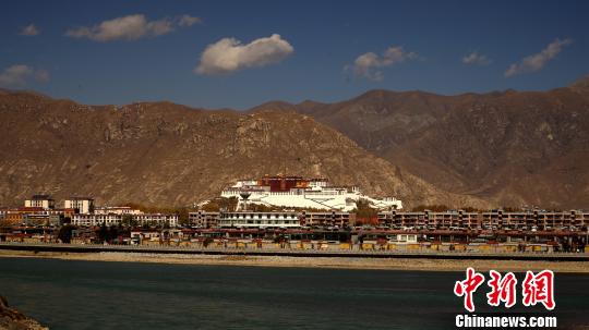 2018拉萨半程马拉松选手将途径拉萨河南岸、迎亲大桥等地点,图为在拉萨河南岸远眺布达拉宫。 江飞波 摄