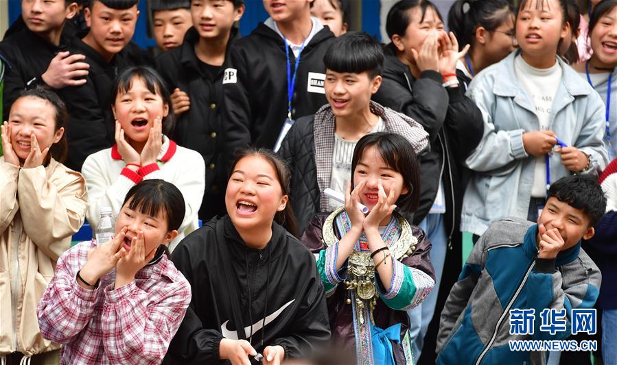 4月17日,学生们为参赛同学呐喊助威。 当日,广西融水苗族自治县杆洞中学举办春季运动会。本次运动会设有接力跑、跳绳、长跑等多个比赛项目,让同学们在春光中享受运动的快乐。 新华社记者黄孝邦摄