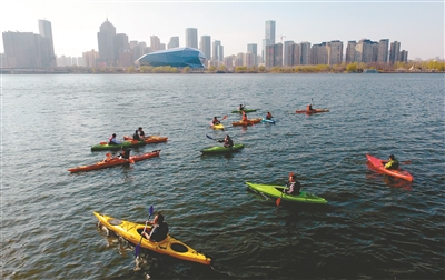 顾雪松告诉记者,他最爱在沈阳浑河上滑行的感觉,“浑河两岸的风景一年比一年美,每一桨的‘水感’都很棒,水温适中、水域开拓,更重要的是处于城市中心,舟行碧波上,我们也成了城市一景儿,很多市民驻足观看,当我们上岸时便有市民围上来询问皮划艇运动如何上手等问题,无形中,也对这项小众运动进行了普及。”