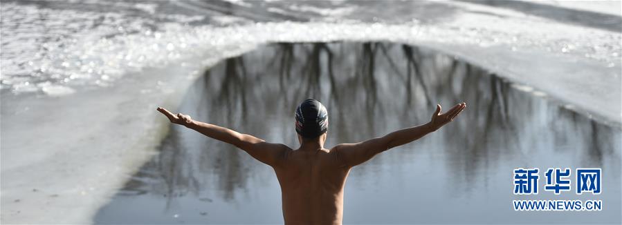 图为2018年12月14日,在沈阳北陵公园,62岁的冬泳爱好者贾先生在零下10摄氏度的严寒中准备冬泳。新华社记者姚剑锋摄