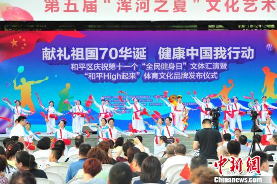 中新网沈阳8月8日电 (韩宏)《中国功夫》表演、少儿实战足球表演……为庆祝全国第十一个全民健身日,“献礼祖国70华诞健康中国我行动”“全民健身日”文体汇演8月8日晚在位于沈阳和平区的沈水湾公园云飏阁文化广场精彩上演。